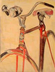 Photo by Craig Barnes Amanda's Higgins - Etching Etching on paper 24x20" I was so happy with the painting of Amanda's bike that I made a similar etching. Amanda and the Higgins are on the left.