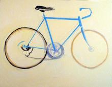 David's Carolina Blue Profile Oil on canvas 48x42" This Schwinn was a gift from David's Father. It had to be the same blue as the UNC Basketball Team the tall guy is Brendon Haywood.