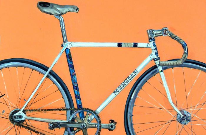 Arone's Mercian 10 <-- [studio] --> Arone's Mercian 10 August 20, 2005 Oil on panel, 24 x 36" Show Scale The Artin Collection The bike gets picked up today just after 6. I didn't make major changes, but tightened up what was there.