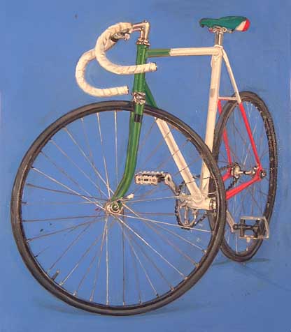 Guy's Atala 25 May 2, 2005 Oil, on canvas , 30 x 26" Show Scale Biggest change in the width of the front wheel (where it crosses the crank arm) and pedals, other than that lots of polishing. [studio]