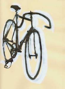 Photo © Amy Bolger Amy's Bike - Black & White Ink, Acrylic on paper 11.5 x 8.75" This pic is from the Cycle Messenger World Championships 2005 I've been wanting to paint Amy's Gan Well Pro for ages. & got my chance, 'cause she's is riding her road bike in California