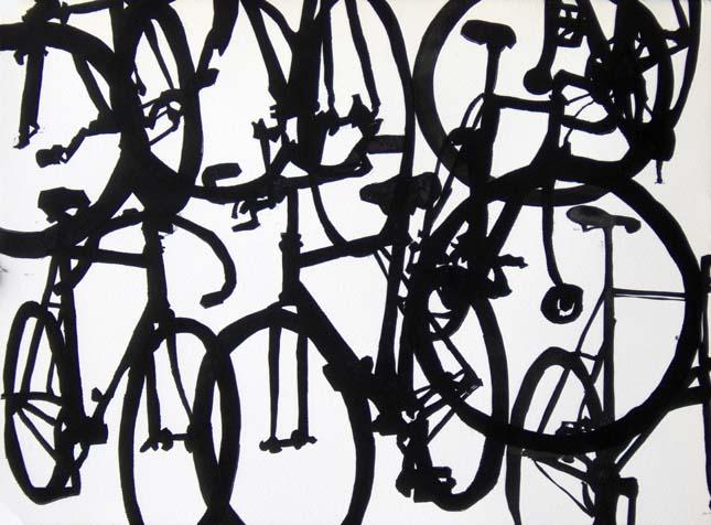 Bike Stack Monotypes 2007 2 <-- [studio] --> Bike Stack Monotypes 2007 2 Relief Monoprint on paper, 11 x 15" Show Scale Private Collection Then inked them.