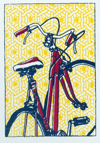 Janine's Bike - Card Print 5 Screenprint , 7 x 5" Show Scale The cold, hard red makes me think of cherries or nail polish. <-- [studio]