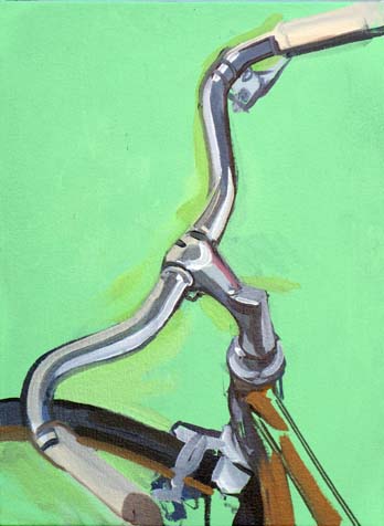 Jase's Bike - Bars 1 October 20, 2009 Oil, on canvas covered panel , 16 x 12" Show Scale The swoop line of the bars, is like a bird. [studio] -->