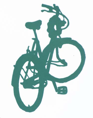 Neighborhood Bike Notecards 5 Screenprint , 5.50 x 4.25" Show Scale The green one is Alice's, <-- [studio]