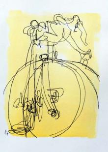 My Bianchi Ink, Watercolor on paper 10 x 7" Sophie's still to small for my bike, But she'll get there.