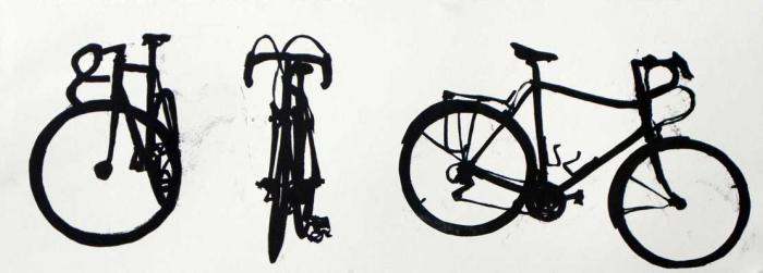 Bikestack Monotypes 2010 52 <-- [studio] Bikestack Monotypes 2010 52 Relief Monoprint , 11 x 30" Show Scale