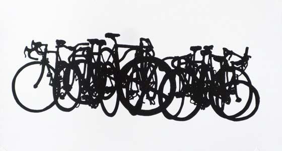 Bikestack Mini 09-2-06+19+34 3 <-- [studio] Bikestack Mini 09-2-06+19+34 3 Screenprint on paper, 6 x 11" Show Scale edition of 42 Sold out After #6