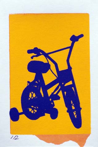 Lil' Prints 2011 4 February 25, 2011 Screenprint , 7 x 5" Show Scale Private Collection edit. 2 Playing around with color combinations. I've been printing these 4x6" blocks I like layering them and using them for grounds. I like the splobs of ink oozing out. Like sorbet. <-- [studio] -->