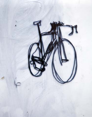 Jeff's Bike - Disposable Drawings 6 November 8, 2012 Sharpie, on plexi , 10 x 8" Show Scale needs to be turned a little more towards the viewer so it's not quite so much a profile the space needs to be more active between the elbow of the bar and the tip of the saddle <-- [studio] -->