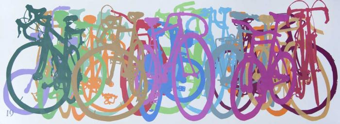 Colorful Row - Monoprints 19 <-- [studio] --> Colorful Row - Monoprints 19 Screen Monoprint , 15 x 40" Show Scale unique print Private Collection