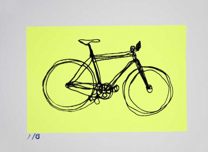Austin's Bike - Scribble Print 2 <-- [studio] --> Austin's Bike - Scribble Print 2 Screenprint , 6 x 8" Show Scale Edit. 6 This print is ready to framein a 10x8" matt and packaged in a cello sleevethe bike is printed with liquid graphite!