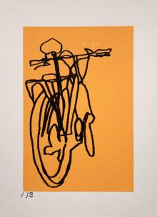 Paul's Bike Scribble Print Screenprint on paper 8x6" This print is based on a sketch It's cool to see it as a print.