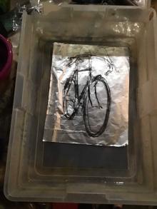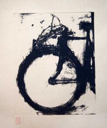 This 1930 something Raleigh Popular is set up as a racer with spectacular handle bars.