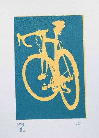 Jamie's Bike - Reverse Silhouette 7 Screenprint on paper, 8 x 6" Show Scale just one This print is ready to frame in a 10x8" matt. <-- [studio] -->