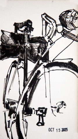 Bernard's RRA - Brush and Ink Sketches 1 October 15, 2025 Ink on paper, 9 x 5.50" Show Scale these are on printmaking paper, Arches, I think [studio] -->