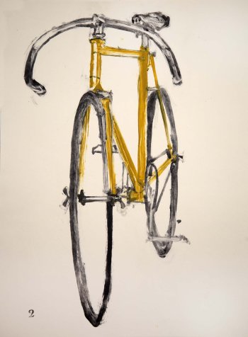 BSA - Monotype 2 December 11, 2025 Ink, Monotype, Watercolor on paper, 23 x 17" Show Scale tried with printer ink, adding raw sienna to a lemon yellow to get the right color. <-- [studio] -->