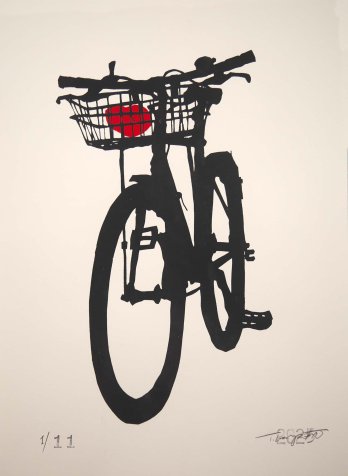 A great piece for cyclists, bike lovers, and anyone drawn to modern, graphic artwork with a handmade feel.
