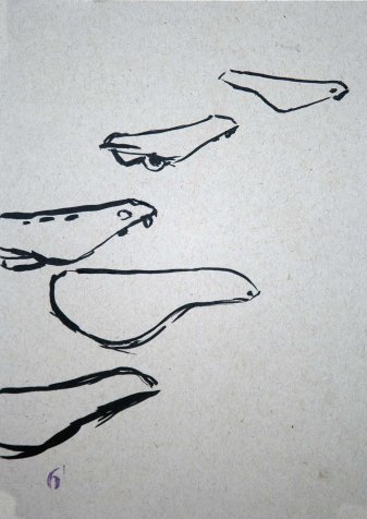 A sketch in brush pen on Fre nch brand paper, a brown heavy card