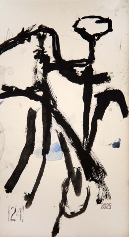 Odds and Ends 2025 24 Ink, Watercolor on paper, 9 x 5" Show Scale this sketch happened recently. I'm not sure when. I like the roughness. <-- [studio]