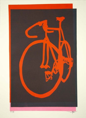 Eddie's Bike - Reverse Silhouette Print 9 Screenprint on paper, 23 x 17" Show Scale $55.00 Quantity Add to cart Leave this field blank printed 11 on Rising Barrier Paper ← Previous [studio] Next →