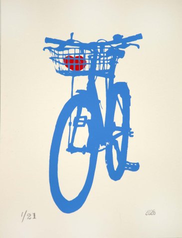 A great piece for cyclists, bike lovers, and anyone drawn to modern, graphic artwork with a handmade feel.